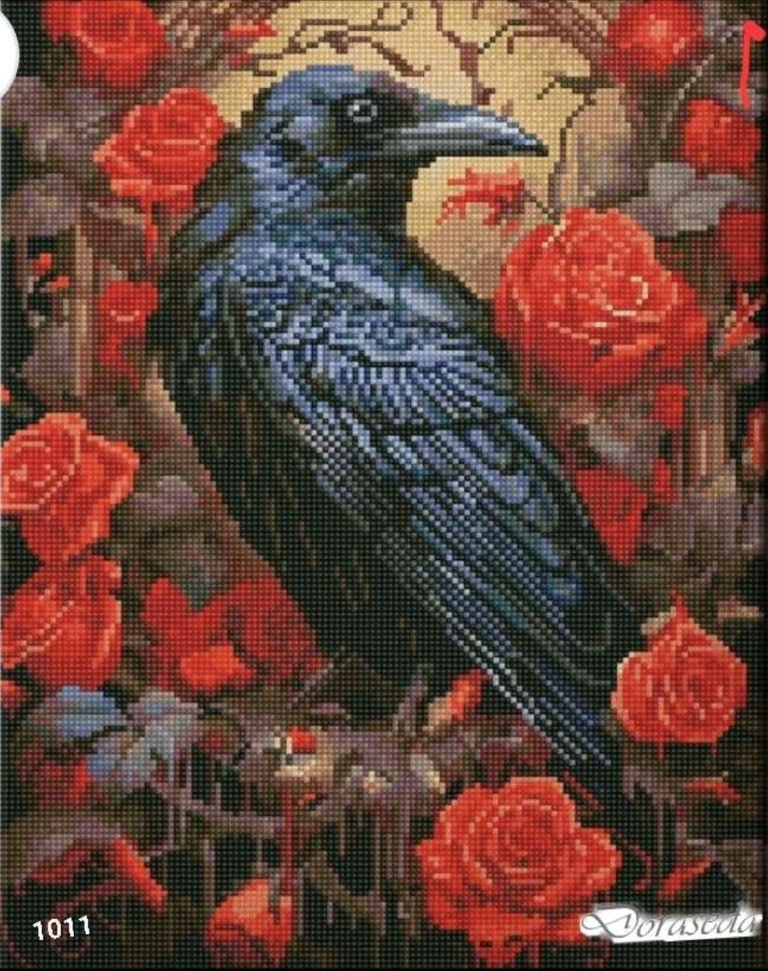 Deimantinė mozaika ant porėmio „Varnas“, 40×50 cm – pilnas dėliojimo rinkinys su žvilgančiais akmenukais, skirtas kūrybiškumui ugdyti ir maloniam laisvalaikiui.