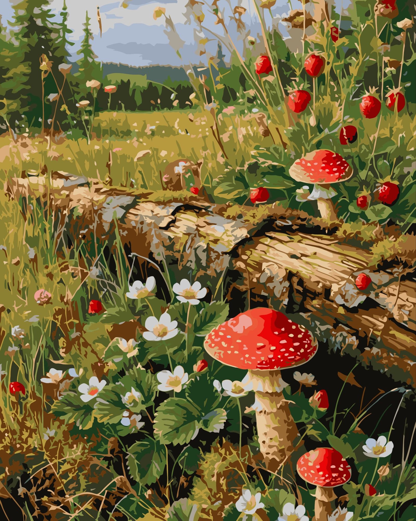 Tapymas pagal skaičius „Grybai” ant porėmio